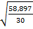 (Ʃ (x-xср)^2)/(n-1)=1708/29=58,897