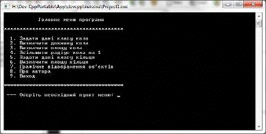 #include "Ring.h" / Клас Кільце */namespace std; /* Простір імен std */choice, x, y, r, wm;MyCircle; /* Оголошення статисного об'єкту MyCircle*/*DMyCircle =