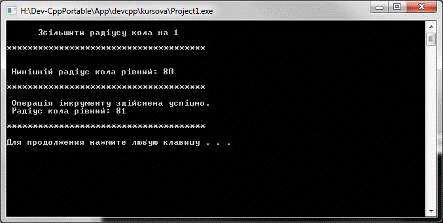 std::cout << "\n Збільшення радіусу кола на 1 \n";