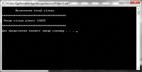 . Якщо обрано пункт меню «Визначення площі кільця»: