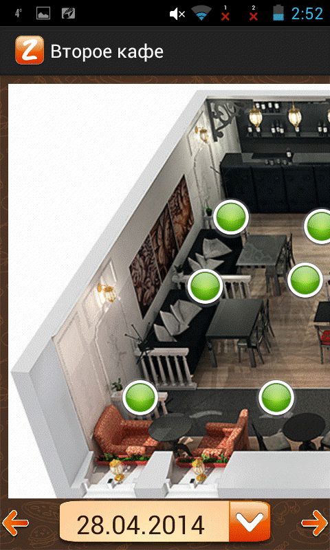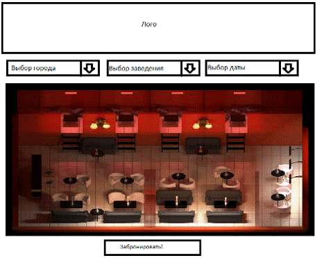 появляется картинка с основным залом заведения. При возможности выбора столика
