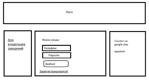 Третья - вход для пользователей. Текстовые поля для ввода телефона и