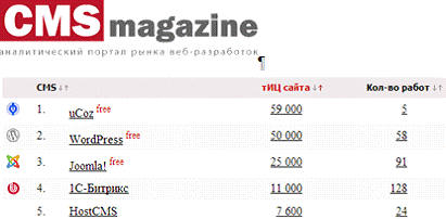 (аналитический портал рынка веб-разработок). Общий рейтинг CMS показан на