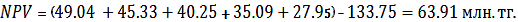 Чистый дисконтированный доход (NPV), млн.тг