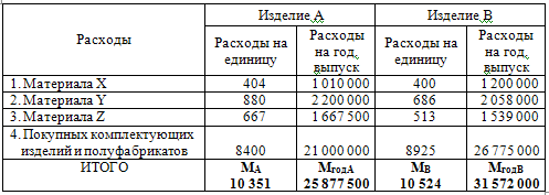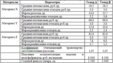 основные материалы, комплектующие и полуфабрикаты для производства товаров А и