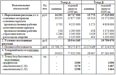 годовые выпуски, тремя способами найдены точки безубыточности для производства