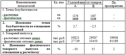 товаров, а также рассмотрено влияние на точку безубыточности изменения