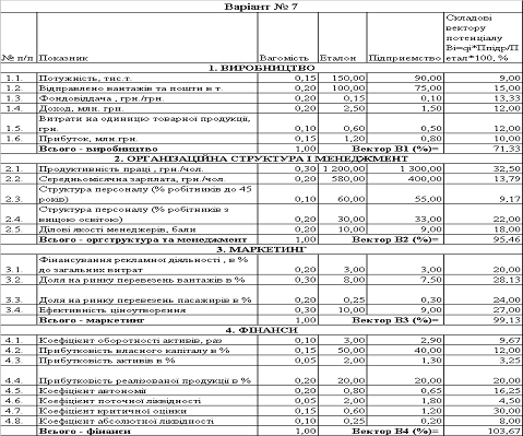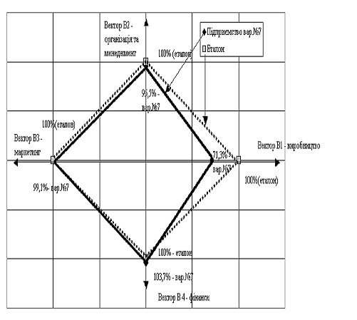 (еталон) в сегменті вектору В1, тобто потенціал підприємства - незбалансований,
