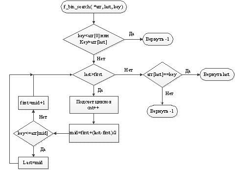 границы)=0;(arr[first]<key&&arr[last]>=key)//условие выхода из