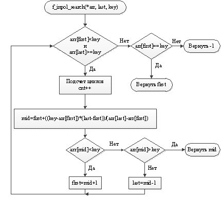 интерполирующий поиск производит оценку новой области поиска по расстоянию