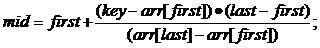 {++;=first+((key-arr[first])*(last-first))/(arr[last]-arr[first]);