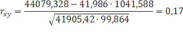 рассчитаем парный коэффициент корреляции по формуле (2.30.)