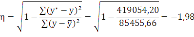 видно, что между факторным и результативным признаками зависимость 39,2%, т.е.