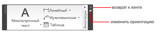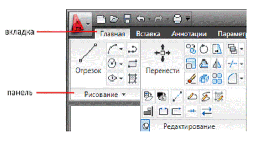 Лента состоит из ряда панелей, которые систематизированы в виде вкладок,