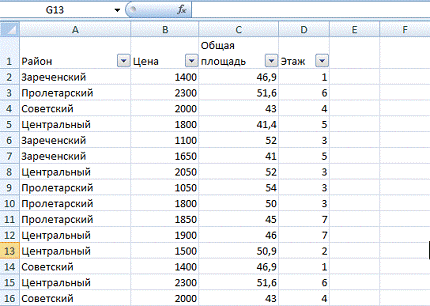 район, цена, общая площадь и этаж. В результате сбора статистических данных по