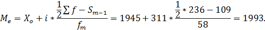 накопленных частот квартир на этом интервале превышает половину суммы частот