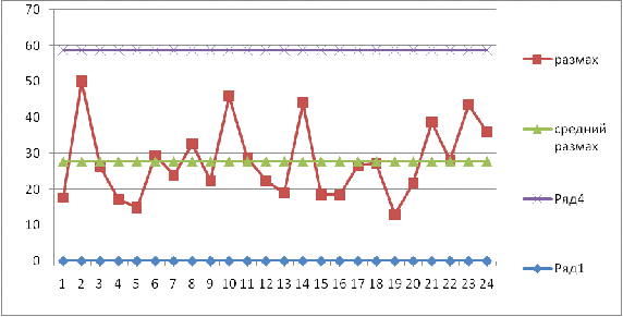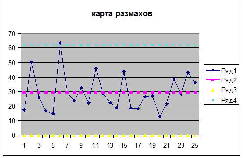 На карте размахов обнаруживаем отклонения: одна точка выходит за