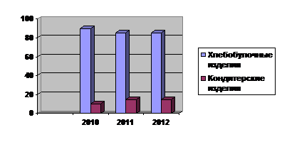 занимают хлебобулочные изделия, которые составляют в 2012 году 87,08%.