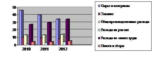 удельный вес затрат на сырье, основные и вспомогательные материалы в 2012 году