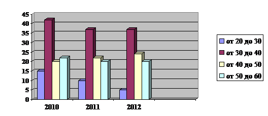 большинство работающих в возрасте от 30 до 40 лет, и всего 6,82% в возрасте от