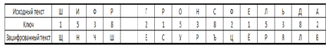 Гронсфельда. Для шифрования здесь используется числовой ключ. Но каждая буква