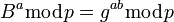 mod p = (gb mod p)a mod p = gab mod p = (ga