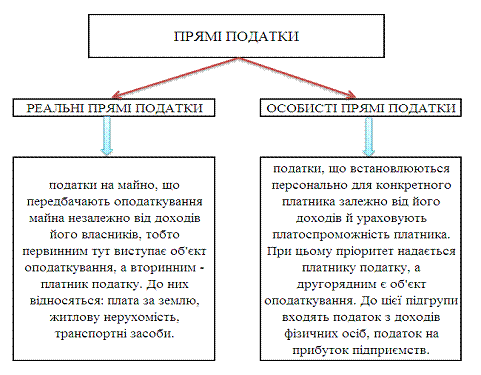 платника і стягуються саме на стадії отримання доходу. Прямі податки виступають