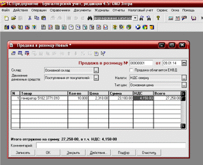 основании введенных ранее документов «Счет-фактура», «Запись книги продаж»,