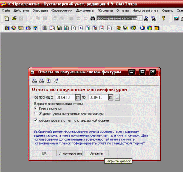 конфигурации «1С:Бухгалтерии» служит отчет «Книга покупок». Он формируется на