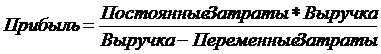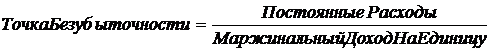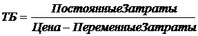 расчетов для нахождения точки безубыточности (пороговой выручки) будет
