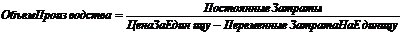 безубыточности (порога рентабельности) мы условно приравниваем «х» бутылок