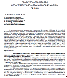 процедура инвентаризации, проведенная в 2011 году.