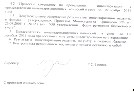 учреждения, проанализирована процедура инвентаризации, проведенная в 2011 году;