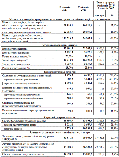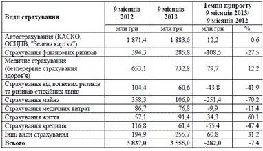 Істотне зменшення за 9 місяців 2013 року обсягів чистих