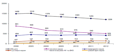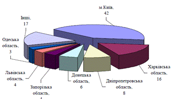 Розподіл кількості наукових установ України за регіонами у 2012 р., %
