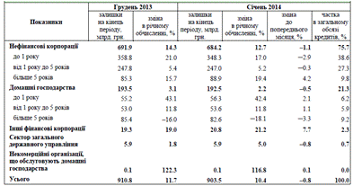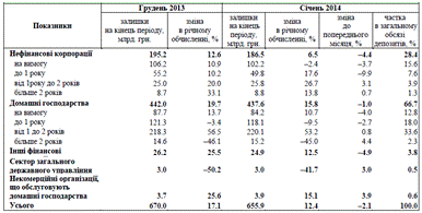 Нові кредитні угоди упродовж січня укладалися переважно з нефінансовими