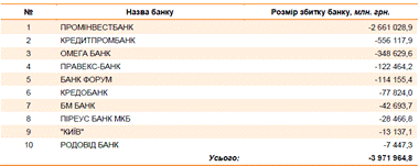 Топ-10 збиткових банків України за результатами I півріччя 2013 року