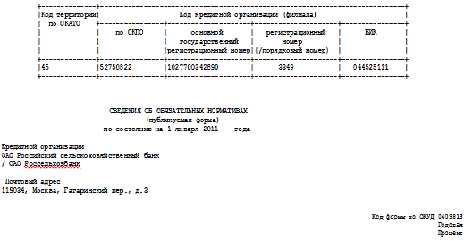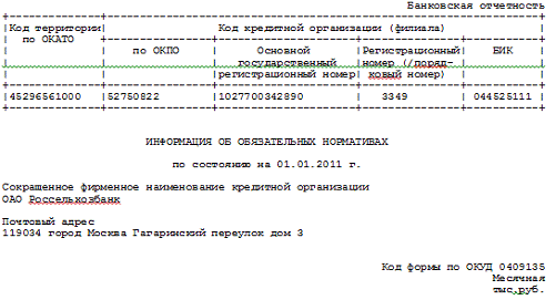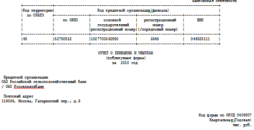 банка ОАО «Россельхозбанк».