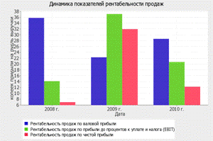 показатели: значительная отрицательная динамика рентабельности продаж.