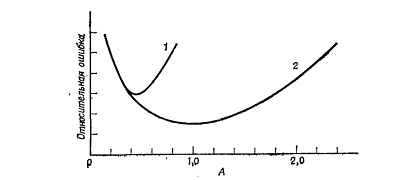 фотометрирования от оптической плотности при тепловых (1) и флуктационных (2)