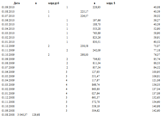 (октябрь 2010г.) наша заначка составляет всего лишь 40 млрд. $, при этом