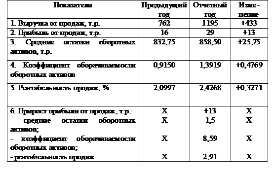 оборотных активов на 0,4769 или на 47,69%. Прирост прибыли от продажи составило