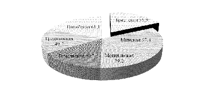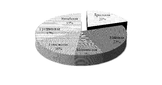 характеризуются Гомельская и Витебская области (45,0 и 39,5 % соответственно),
