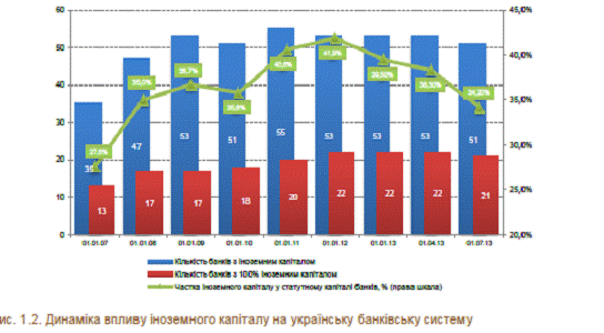 З початку 2013 року частка іноземного капіталу в