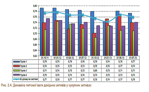 Питома вага дохідних активів у сукупних активах