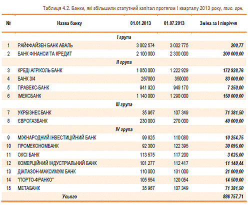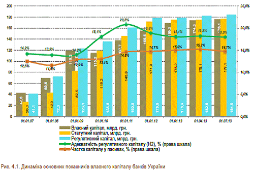 і становив 176,08 млрд. грн. станом на 01.07.2013р. Розмір власного капіталу і