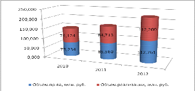 с анализа динамики объема производства и реализации за 3 года в сопоставимых