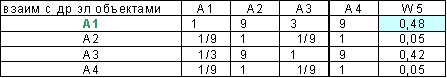 матрицы парных отношений, в клетках которых записывается степень значимости