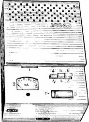 сетевого напряжения; 2, 3 - сигнальные лампочки;4 - переключатель диапазонов; 5