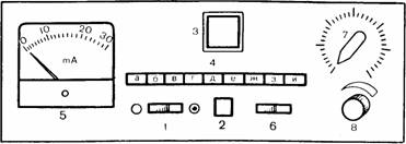 Рис. Панель управления аппарата «Амплипульс-4» (схема): I - выключатель